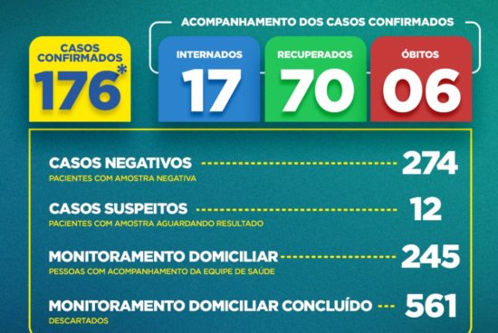 Com a atualização, o município chega a 176 pacientes que tiveram o diagnóstico confirmado para coronavírus, dos quais 70 evoluíram para a alta, após avaliação, e estão recuperados. A Secretaria Municipal de Saúde informou ainda que Alagoinhas não registrou, nas últimas 24 horas, mortes por coronavírus e permanece com 6 óbitos registrados. São, portanto, 100 pacientes infectados, neste momento, de acordo com dados da Vigilância, na contagem de todas as pessoas positivadas, menos aquelas que já tiveram a recuperação constatada e os óbitos em decorrência da doença infecciosa viral respiratória.