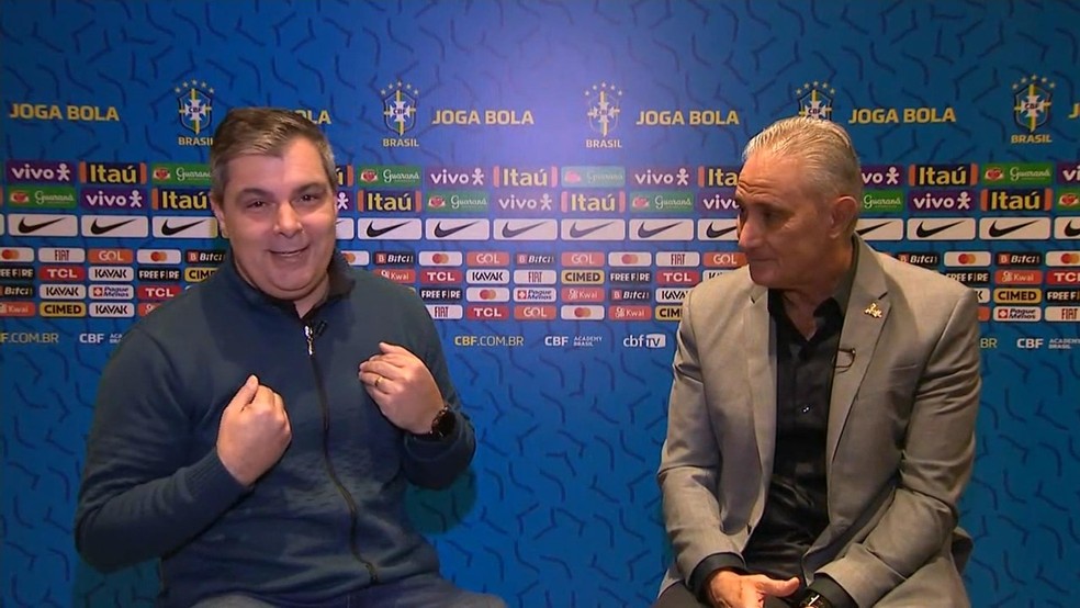 Rodrigo Faraco entrevista técnico Tite — Foto: Reprodução/NSC